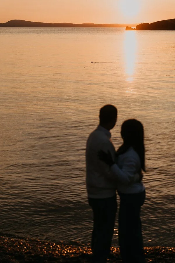 When I met Lina and Jerrick at Deception Pass State Park for their engagement session, Washington had been experiencing a string of eighty degree days. But the day I met them it was cooler and overcast and I was worried we weren’t going to get good weather. Thankfully my fears were for nothing as Mother Nature pulled it out at the last minute for a beautiful sunset for them.